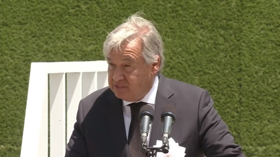 นางาซากิ 9 ส.ค. – นายอันโตนิโอ กูเตอร์เรส เลขาธิการสหประชาชาติกล่าวเรียกร้องให้ปลดอาวุธนิวเคลียร์ในพิธีรำลึกครบรอบ 73 ปี เหตุการณ์ที่สหรัฐทิ้งระเบิดปรมาณูถล่มเมืองนางาซากิ