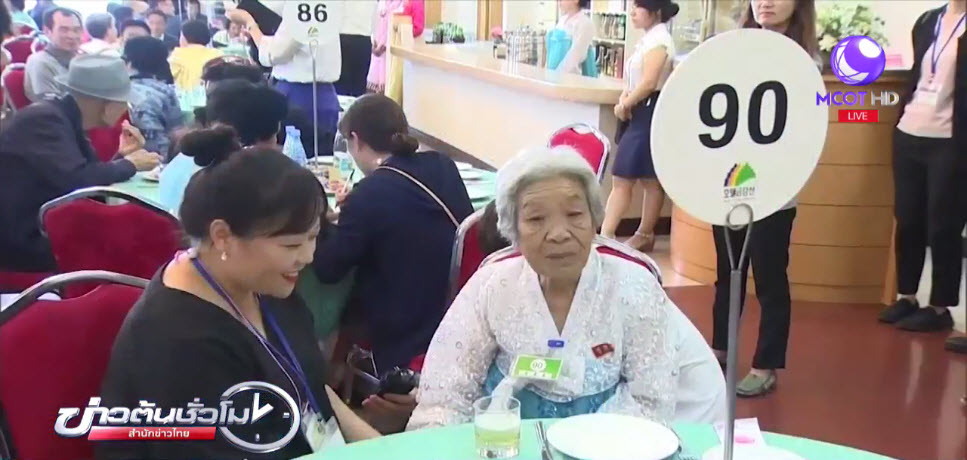 เกาหลีเหนือ 22 ส.ค. – วันนี้ครอบครัวสองเกาหลีที่ต้องพลัดพรากจากกัน ได้พบปะกันเป็นชุดสุดท้าย ที่รีสอร์ตบนภูเขาคึมกังในเกาหลีเหนือ และรับประทานอาหารกลางวันร่วมกัน