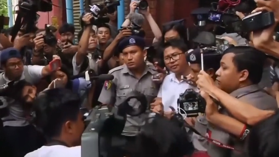 นายวา โลน วัย 32 ปี และนายจ่อ โซ อู่ วัย 28 ปีถูกจับกุมขณะรายงานข่าวเหตุการณ์ความรุนแรงกับชาวมุสลิมโรฮิงญาราว 700,000 คนเมื่อปีที่แล้ว ศาลย่างกุ้งตัดสินว่า มีความผิดตามกฎหมายความลับทางราชการและต้องถูกลงโทษจำคุกคนละ 7 ปี ก่อให้เกิดเสียงประท้วงไม่พอใจจากสหประชาชาติ สหภาพยุโรป และสหรัฐ รวมทั้งสื่อและกลุ่มสิทธิต่างๆ นางซูจีซึ่งเคยถูกรัฐบาลเมียนมากักบบริเวณร่วม 15 ปี และอาศัยสื่อต่างชาติในการนำเสนอข่าวของเธอมาโดยตลอดจนกระทั่งได้เข้าบริหารประเทศ กลับถูกวิจารณ์อย่างหนักที่ยังคงนิ่งเฉยต่อคำตัดสินของศาล อย่างไรก็ตาม นายออง ฮลาตุน อดีตผู้สื่อข่าวรอยเตอร์ ซึ่งปัจจุบันดำรงตำแหน่งผู้ช่วยรัฐมนตรีฝ่ายสื่อสารกล่าวชี้แจงว่า การที่นางซูจีนิ่งเฉยเพราะไม่ต้องการวิพากษ์วิจารณ์การทำงานของศาลและกระบวนการยุติธรรม ทางด้านทนายความของผู้สื่อข่าวสองคนจะยื่นอุทธรณ์คำตัดสิน และประธานาธิบดีมีอำนาจในการให้อภัยโทษได้ .- สำนักข่าวไทย