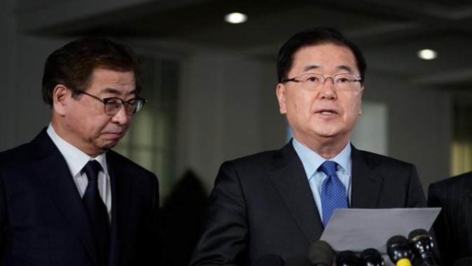 นายชอง อึย-ยง ผู้อำนวยการสำนักงานความมั่นคงแห่งชาติประจำทำเนียบประธานาธิบดีเกาหลีใต้กล่าวว่า เขากำลังหารือเพื่อหาแนวทางบรรลุตามเป้าหมายปลดชนวนอาวุธนิวเคลียร์บนคาบสมุทรเกาหลีโดยสมบูรณ์ตามที่นายมุนและนายคิมได้ตกลงกันไว้ระหว่างการประชุมสุดยอดครั้งแรกในเดือนเมษายนที่ผ่านมา อย่างไรก็ตามผู้แทนพิเศษเกาหลีใต้ไม่ได้เปิดเผยเนื้อหาในจดหมาย นายชองแถลงกับผู้สื่อข่าวว่า เกาหลีใต้จะเดินหน้าผลักดันการออกปฏิญญาร่วมเพื่อสิ้นสุดสงครามเกาหลีปี 2493-2496 อย่างเป็นทางการภายในปีนี้ร่วมกับสหรัฐ .- สำนักข่าวไทย
