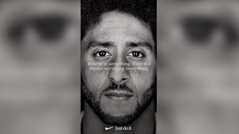 แคปเปอร์นิค อดีตควอเตอร์แบ็คดาวดังของทีมซานฟรานซิสโกฟอร์ตีไนน์เออร์สถูกลีกอเมริกันฟุตบอลอาชีพของสหรัฐหรือเอ็นเอฟแอลขึ้นบัญชีดำเพราะเป็นนักกีฬาคนแรกที่ชันเข่า ไม่ยืนเคารพเพลงชาติก่อนการแข่งขันเมื่อปี 2559 ประท้วงการเลือกปฏิบัติต่อคนผิวดำ ไนกี้ให้เขาเป็นนายแบบโฆษณาใหม่ในแคมเปญ Just Do It ฉลองครบรอบ 30 ปีของการใช้สโลแกนนี้ ปรากฏว่าราคาหุ้นบริษัทร่วงลงร้อยละ 3.2 เมื่อวันอังคารตามเวลาสหรัฐ โลกโซเชียลมีทั้งผู้ทวีตให้คว่ำบาตรสินค้าไนกี้และผู้สนับสนุนให้ใช้ต่อไป