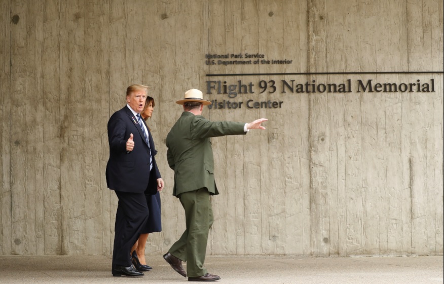 ในพิธีที่จัดขึ้นที่เมืองแชงส์วิลล์ ในรัฐเพนซิลเวเนีย ประธานาธิบดีทรัมป์ กล่าวยกย่องความกล้าหาญของบุรุษและสตรี 40 คนบนเครื่องบินเที่ยวบินที่ 93 ซึ่งช่วยกันจัดการกับสลัดอากาศ 4 คน ที่เข้าควบคุมเครื่องบินโดยสารและนำเครื่องบินเปลี่ยนเส้นทางมุ่งหน้ามายังกรุงวอชิงตัน ซึ่งการกระทำของพวกเขาทำให้สามารถป้องกันมิให้เครื่องบินก่อเหตุร้ายในกรุงวอชิงตันได้ เครื่องบินลำนี้ตกในทุ่งของพื้นที่ชนบทในเมืองแชงส์วิลล์ ซึ่งมีการสร้างอนุสรณ์สถานที่เรียกว่า “ทาวเวอร์ ออฟ วอยเซส” เพื่อรำลึกเหตุการณ์ดังกล่าว ส่วนที่นครนิวยอร์ค ก็มีการจัดพิธีรำลึกวาระครบรอบ 17 ปีของเหตุการณ์ที่เรียกว่า 9/11โดยมีการยืนสงบนิ่งไว้อาลัยเป็นเวลา 1 นาที ในเวลา 8.46 น. ตามเวลาท้องถิ่น หรือ ตรงกับ 19.46 น. ตามเวลาในประเทศไทย ซึ่งเป็นเวลาที่เครื่องบินโดยสารลำแรกในจำนวนสองลำพุ่งเข้าชนกับอาคารเวิลด์เทรดเซ็นเตอร์ หลังจากนั้น มีการอ่านรายชื่อผู้ที่เสียชีวิตเกือบ 3,000 คน จากเหตุการณ์โจมตีในครั้งนี้ ซึ่งเป็นธรรมเนียบปฏิบัติทุกปี เหตุการณ์ดังกล่าวเกิดขึ้นหลังจากเครื่องบินโดยสาร 4 ลำ ถูกสลัดอากาศที่เป็นกลุ่มอัลกออิดะห์ จี้บังคับ 2 ลำชนกับอาคารเวิลด์ เทรด เซ็นเตอร์ จนพังเสียหายทั้งหมด อีกลำหนึ่งชนกับอาคารกระทรวงกลาโหมและอีกลำตกที่เมืองแชงส์วิลล์.-สำนักข่าวไทย