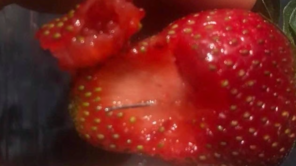 มุขมนตรีรัฐควีนส์แลนด์แถลงข่าววันนี้ว่า มีผู้พยายามบ่อนทำลายอุตสาหกรรมสตรอว์เบอร์รี แต่การกระทำเช่นนั้นจะทำให้ชีวิตของเด็กเล็กและผู้บริโภคตกอยู่ในอันตราย ตำรวจเผยว่า มีสตรอว์เบอร์รีในออสเตรเลียถูกผู้ไม่ประสงค์ดีซ่อนเข็มเย็บผ้าและเข็มหมุดไว้ประมาณ 6 ยี่ห้อประกอบด้วยเบอร์รีอ็อบเซสชัน เบอร์รีลิเชียส ดอนนีบรูคเบอร์รีส์ เลิฟเบอร์รี ดีไลท์ฟูลสตรอว์เบอร์รีส์ และโอเอซิส ทั้งหมดรับมาจากผู้ส่งรายเดียวกันในรัฐควีนส์แลนด์ จึงขอเตือนประชาชนให้หั่นผลสตรอว์เบอร์รีก่อนรับประทาน