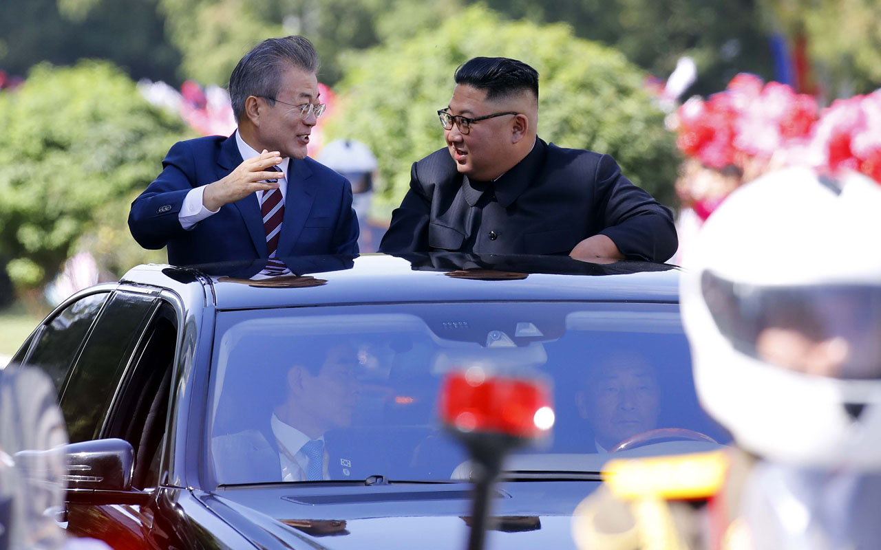 เปียงยาง 19 ก.ย.- ประธานาธิบดีมุน แจอินของเกาหลีใต้และนายคิม จองอึนผู้นำเกาหลีเหนือร่วมรถคันเดียวกันในขบวนรถที่เคลื่อนไปตามถนนสายหลักในกรุงเปียงยางวันอังคารท่ามกลางเสียงแสดงความยินดีของประชาชนหลายพันคนที่มารอให้การต้อนรับในการประชุมสุดยอดครั้งที่สาม ซึ่งนายมุนจะหาทางรื้อฟื้นการเจรจาปลดชนวนนิวเคลียร์ระหว่างเกาหลีเหนือกับสหรัฐ