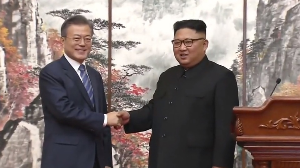 ประธานาธิบดีมุนแถลงข่าวร่วมกับนายคิม จองอึน ผู้นำเกาหลีเหนือในวันนี้หลังประชุมสุดยอดหลายรอบที่กรุงเปียงยางของเกาหลีเหนือว่า ทั้งคู่เห็นตรงกันว่าจะเปลี่ยนคาบสมุทรเกาหลีให้เป็นดินแดนแห่งสันติภาพที่ปราศจากอาวุธนิวเคลียร์และภัยคุกคามนิวเคลียร์ ขณะที่คิมกล่าวว่า จะเยือนกรุงโซลในเร็ว ๆ นี้ ซึ่งจะเป็นครั้งแรกตั้งแต่การก่อตั้งประเทศเกาหลีเหนือ
