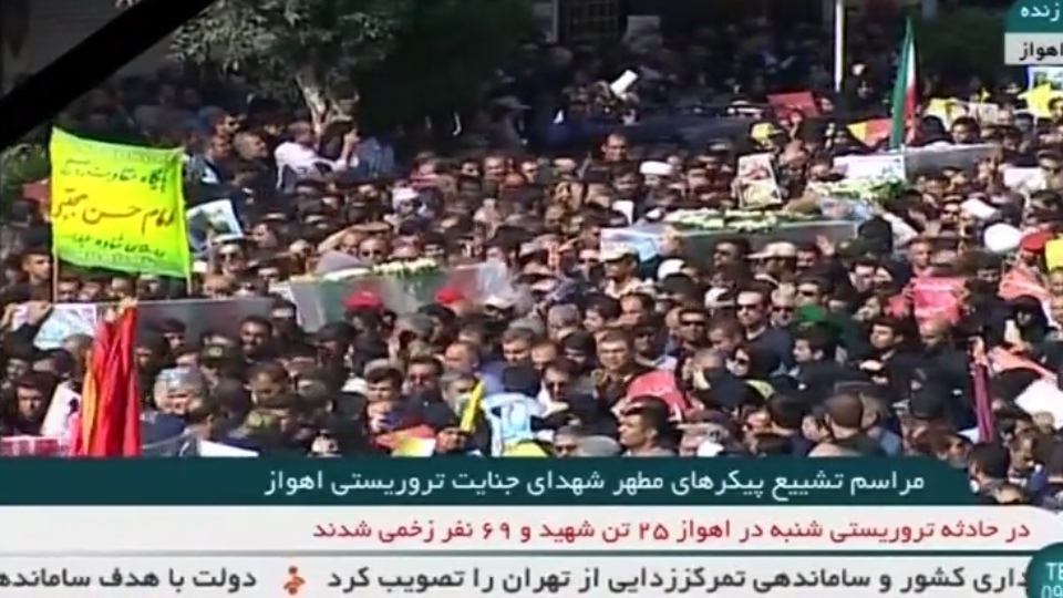 อิหร่านประกาศให้วันนี้เป็นวันไว้อาลัยระดับประเทศ ส่วนที่จังหวัดคูเซสถาน สถานที่ตั้งเมืองอาห์วาซ หน่วยงานราชการ ธนาคาร โรงเรียนและมหาวิทยาลัยปิดหมด กลุ่มร้าย 4 คนเปิดฉากยิงใส่อัฒจันทร์ที่เจ้าหน้าที่ระดับสูงกำลังนั่งชมขบวนสวนสนาม เป็นหนึ่งในงานที่จัดขึ้นทั่วประเทศรำลึกการเปิดฉากสงครามกับอิรักปี 2523 ที่ดำเนินไปจนถึงปี 2531 เหตุโจมตีนี้ทำให้มีผู้เสียชีวิต 25 คน เป็นเจ้าหน้าที่กองกำลังพิทักษ์การปฏิวัติถึง 12 นาย