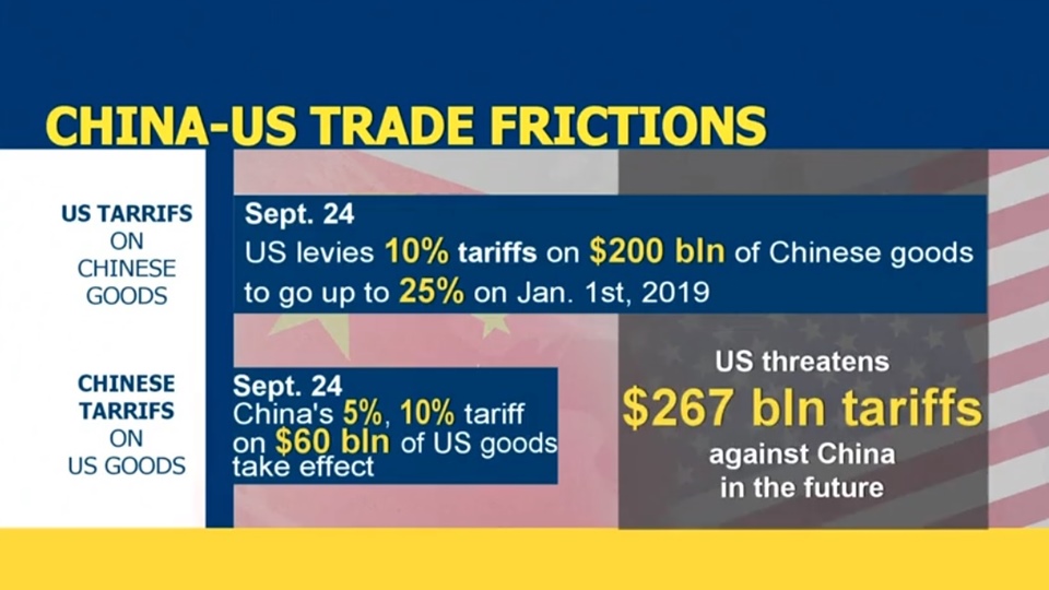 ปักกิ่ง 24 ก.ย.- สำนักข่าวซินหัวของทางการจีนรายงานวันนี้อ้างเอกสารทางการจีนว่า สหรัฐใช้อิทธิพลระรานทางการค้าและข่มขู่ประเทศอื่นๆเพื่อให้ยอมทำตามนโยบายของสหรัฐ เช่น มาตรการทางภาษี เป็นต้น หลังจากเมื่อไม่กี่ชั่วโมงที่ผ่านมาทั้งสหรัฐและจีนต่างออกมาตรการเรียกเก็บภาษีครั้งใหม่กับสินค้านำเข้าของแต่ละฝ่าย