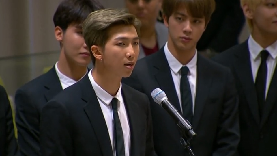 คิม นัมจุน หรือที่รู้จักในชื่ออาร์เอ็ม หัวหน้าวงบีทีเอสได้พูดถึงประสบการณ์ของตัวเองที่เคยขาดความมั่นใจ โดยได้เรียนรู้ที่จะยอมรับข้อบกพร่องและความกลัวที่มี คิม นัมจุนและวงบีทีเอสซึ่งได้รับเชิญให้เข้าร่วมโครงการเพื่อเยาวชนของสหประชาชาติกล่าวกับผู้สื่อข่าวองค์การยูนิเซฟที่ด้านนอกการประชุมว่า บีทีเอสหวังว่า สิ่งที่พวกเขาทำจะสามารถช่วยได้บ้างและทำให้รู้สึกดีขึ้น ซึ่งถือเป็นความตั้งใจของพวกเขา วงบอยกรุ๊ปสัญชาติเกาหลีที่มีอัลบั้มในชื่อ Love Yourself ขึ้นตารางเพลงฮิตอันดับหนึ่งตั้งแต่เปิดตัวเมื่อปี 2560 .- สำนักข่าวไทย