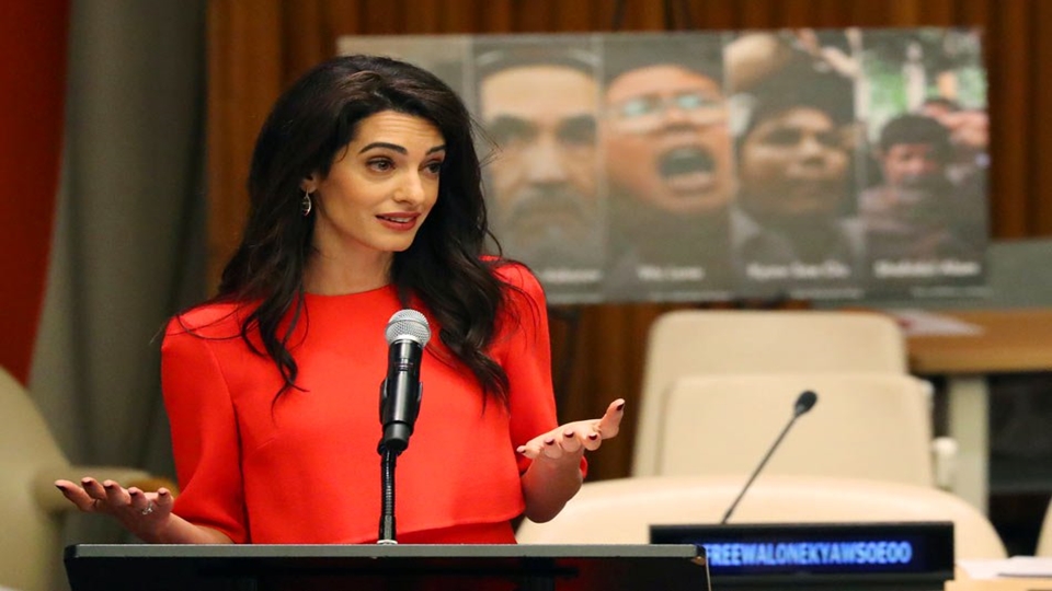 สหประชาชาติ 29 ก.ย.- นางอามัล คลูนีย์ ทนายความด้านสิทธิมนุษยชนและภรรยาของนายจอร์จ คลูนีย์ ดาราฮอลลีวูด ขอร้องนางออง ซาน ซู จี ผู้นำโดยพฤตินัยของเมียนมา ปล่อยตัวนักข่าวรอยเตอร์สองคนที่ถูกจำคุก 7 ปีเมื่อต้นเดือนนี้ข้อหาละเมิดกฎหมายความลับราชการ