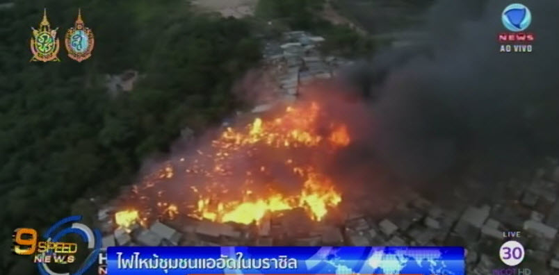 บราซิล 14 ก.ย.-เกิดเหตุเพลิงไหม้อย่างรุนแรงในชุมชนแออัดย่านโอซัสโก ซึ่งตั้งอยู่ชานเมืองนครเซาเปาโลในบราซิล ทำให้ประชาชนหลายร้อยคนต้องหนีตายอย่างจ้าละหวั่น เนื่องจากเปลวเพลิงลุกลามอย่างรวดเร็ว เพราะบ้านเรือนส่วนใหญ่ทำจากไม้ อย่างไรก็ดี ยังไม่มีรายงานผู้บาดเจ็บหรือเสียชีวิต สื่อท้องถิ่นรายงานว่า ชุมชนแออัดแห่งนี้มีประชากรอาศัยอยู่ราว 1,000 คน ในบ้านเรือน 120 หลัง ซึ่งขณะนี้ถูกไฟเผาราบเป็นหน้ากลอง.-สำนักข่าวไทย