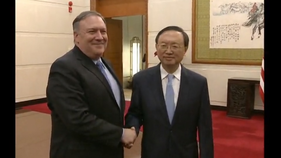 ปักกิ่ง 9 ต.ค.- นายหยาง เจี๋ยฉือ มนตรีแห่งรัฐและรัฐมนตรีต่างประเทศจีนได้พบหารือกับนายไมค์ พอมเพโอ รัฐมนตรีต่างประเทศสหรัฐที่มาเยือนกรุงปักกิ่งเมื่อวันจันทร์