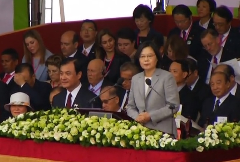 ประธานาธิบดีไช่กล่าวสุนทรพจน์เนื่องในวันชาติไต้หวัน 10 ตุลาคมว่า เวลานี้การข่มขู่และการกดดันทางการทูตของจีนไม่เพียงทำร้ายความสัมพันธ์ของสองฝ่าย แต่ยังท้าทายเสถียรภาพอันสันติในช่องแคบไต้หวันอย่างร้ายแรง ไต้หวันจะเพิ่มงบกลาโหมทุกปีเพื่อสร้างหลักประกันว่าจะสามารถปกป้องอธิปไตยด้วยการยกระดับศักยภาพกองทัพและการพึ่งพาตนเอง เช่น ฟื้นโครงการพัฒนาการฝึกเครื่องบินและเรือดำน้ำขั้นสูงด้วยตนเอง ขณะเดียวกันไต้หวันจะต้องร่วมกับหลายประเทศสร้างพันธมิตรปกป้องประชาธิปไตย ผู้นำไต้หวันยังได้ขอให้นานาชาติร่วมกันต่อสู้กับการแทรกซึมในบางรูปแบบ เช่น การแพร่กระจายข่าวเท็จของบางประเทศ เธอขอรับปากกับทุกคนว่า ไต้หวันจะไม่บุ่มบ่ามเพิ่มความเป็นปรปักษ์ แต่ก็จะไม่ยอมจำนนหรืออ่อนข้อให้ใคร