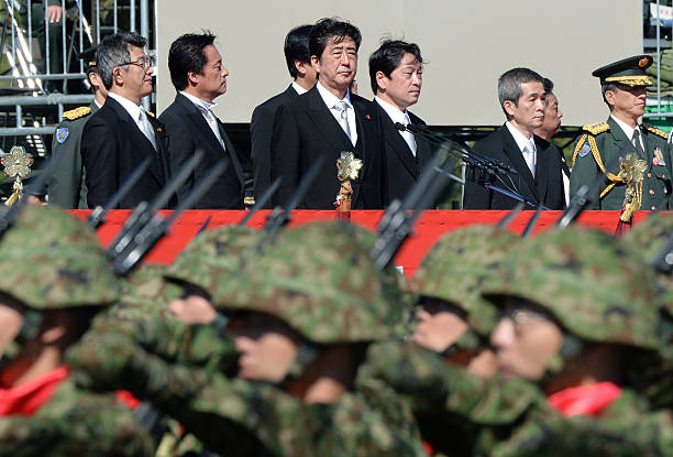 กำลังพลกว่า 4,000 นายของกองกำลังป้องกันประเทศทำความเคารพขณะสวนสนามที่ด้านหน้านายกรัฐมนตรีอาเบะและนายทาเคชิ อิวายะ รัฐมนตรีกระทรวงป้องกันประเทศคนใหม่ นายกรัฐมนตรีอาเบะแถลงในพิธีว่า เขาจะดำเนินการอย่างสุดความสามารถเพื่อปกป้องชีวิตประชาชนชาวญี่ปุ่นและการอยู่ร่วมกันอย่างสันติท่ามกลางภัยคุกคามด้านความมั่นคงโดยรอบ นายอาเบะได้รับเลือกให้ดำรงตำแหน่งหัวหน้าพรรคเสรีประชาธิปไตย(แอลดีพี)อีกครั้งเมื่อเดือนกันยายน และพยายามปรับแก้กฎหมายรัฐธรรมนูญตามมาตรา 9 เพื่อให้กองกำลังญี่ปุ่นมีบทบาทด้านการทหารมากขึ้น จากปัจจุบันที่กำหนดบทบาทของกองกำลังญี่ปุ่นเพื่อป้องกันประเทศเท่านั้น .-สำนักข่าวไทย