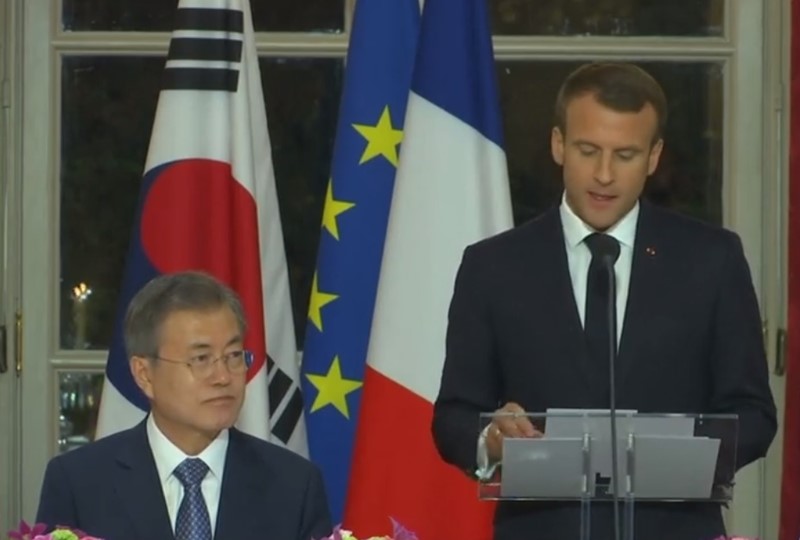 ผู้นำฝรั่งเศสให้การต้อนรับประธานาธิบดีมุน แจอินของเกาหลีใต้และภริยาในงานเลี้ยงอาหารค่ำที่ทำเนียบเอลีเซ ขณะที่ผู้นำเกาหลีใต้ซึ่งเยือนฝรั่งเศสอย่างเป็นทางการกล่าวขอบคุณประธานาธิบดีมาครงและประชาชนชาวฝรั่งเศสที่สนับสนุนความพยายามสร้างสันติภาพของเกาหลีใต้มาโดยตลอด นายมาครงกล่าวว่า ฝรั่งเศสจะไม่ผ่อนปรนมาตรการคว่ำบาตรกับเกาหลีเหนือหรือสถาปนาความสัมพันธ์ทางการทูตกับเกาหลีเหนือในเวลานี้ ประธานาธิบดีมุนกล่าวว่าฝรั่งเศสในฐานะสมาชิกถาวรคณะมนตรีความมั่นคงยูเอ็นเป็นหุ้นส่วนสำคัญในความพยายามสร้างสันติภาพกับเกาหลีเหนือ ผู้นำเกาหลีใต้มีภารกิจเยือนยุโรปอย่างเป็นทางการ รวมถึงอิตาลี เบลเยียม และเดนมาร์ก เพื่อระดมเสียงสนับสนุนการปรองดองระหว่างเกาหลี ท่ามกลางข้อสงสัยของหลายฝ่ายว่าเกาหลีเหนือจะยอมปลดอาวุธหรือไม่ .- สำนักข่าวไทย