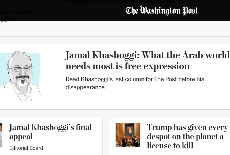 วอชิงตัน 18 ต.ค.- หนังสือพิมพ์วอชิงตันโพสต์ของสหรัฐตีพิมพ์บทความที่ระบุว่าน่าจะเป็นชิ้นสุดท้ายของนายจามาล คาชอกจี นักข่าวซาอุดีอาระเบียที่หายไปหลังเข้าไปในสถานกงสุลซาอุดีอาระเบียในตุรกีเมื่อวันที่ 2 ตุลาคม