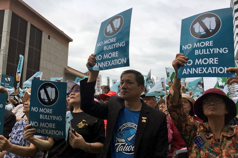 การชุมนุมวันนี้จัดขึ้นโดยกลุ่มพันธมิตรฟอร์โมซาที่ตั้งขึ้นเมื่อ 6 เดือนก่อน มีขึ้นใกล้ที่ทำการใหญ่พรรคประชาธิปไตยก้าวหน้าของประธานาธิบดีไช่ อิงเหวิน ผู้ชุมนุมเห็นว่ารัฐบาลควรผลักดันจีนกลับไป และควรจัดการลงประชามติเรื่องแยกตัวเป็นเอกราชเพื่อไม่ให้ถูกจีนกลืนกิน ผู้ชุมนุมบางคนถือป้ายมีข้อความว่า “ไม่มีการรังแกอีกต่อไป ไม่มีการผนวกดินแดนอีกต่อไป”