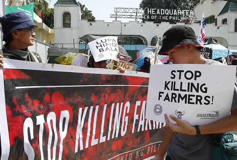 สำนักงานตำรวจแห่งชาติฟิลิปปินส์แถลงว่า เกษตรกร 9 คน เป็นเยาวชน 2 คน ถูกฆาตกรรมในจังหวัดเนโกรสตะวันตกเมื่อคืนวันเสาร์ ตำรวจกำลังสอบสวนรายงานข่าวที่ว่ามีกลุ่มมือปืนเปิดฉากยิงใส่เกษตรกรกลุ่มนี้ แต่สหพันธ์คนงานน้ำตาลแห่งชาติที่เกษตรกรเหล่านี้เป็นสมาชิกอยู่และกลุ่มเกษตรกรอีกสองกลุ่มออกแถลงการณ์ร่วมกันว่า จะเปิดการสอบสวนเอง เพราะไม่เชื่อใจทางการว่าจะสอบสวนอย่างเป็นธรรม เกษตรกรเหล่านี้ทำไร่อ้อยร่วมกันในพื้นที่ที่ถูกกำหนดให้แจกจ่ายตามโครงการปฏิรูปที่ดินของรัฐบาล แต่เจ้าของที่ดินจ้างกลุ่มอันธพาลมาข่มขู่ สะท้อนให้เห็นว่าโครงการปฏิรูปที่ดินของรัฐบาลล้มเหลวและเจ้าที่ดินไม่ยอมแจกจ่ายที่ดินให้แก่ชาวไร่ชาวนา