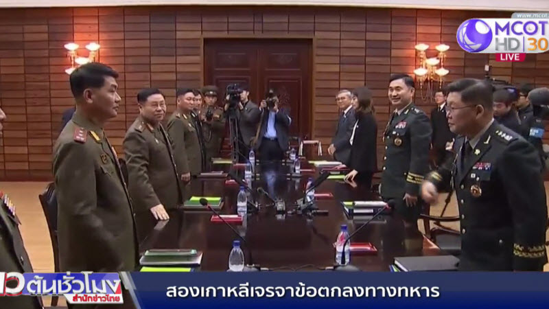 เกาหลี 26 ต.ค.-นายทหารของเกาหลีเหนือและเกาหลีใต้เข้าร่วมการเจรจาที่หมู่บ้านปันมุนจอม เพื่อหารือเรื่องการดำเนินการตามข้อตกลงลดความตึงเครียดทางทหารระหว่างกัน หลังจากผู้นำของทั้งสองฝ่ายบรรลุข้อตกลงกันไปเมื่อเดือนที่แล้ว