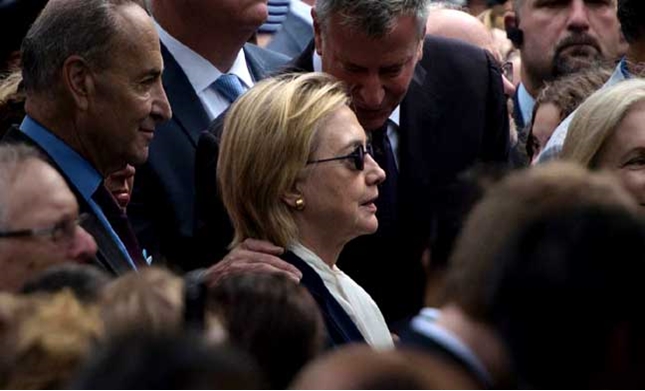 นายทรัมป์วัย 70 ปีซึ่งเข้าร่วมพิธีรำลึกเช่นกันยังไม่ได้ทวีตแสดงความเห็นใด ๆ ทั้งที่เมื่อไม่นานมานี้กล่าวหานางคลินตันวัย 68 ปีว่าไม่แข็งแรงพอจะเป็นประธานาธิบดี ขาดความทรหดทั้งกายและใจที่จะต่อสู้กับกลุ่มไอซิส ซึ่งเป็นชื่อที่สหรัฐใช้เรียกกลุ่มรัฐอิสลาม (ไอเอส) นายทรัมป์และคณะหาเสียงรวมทั้งผู้สนับสนุนเพิ่งย้ำในช่วงหลายสัปดาห์มานี้ว่านางคลินตันมีปัญหาสุขภาพหนัก