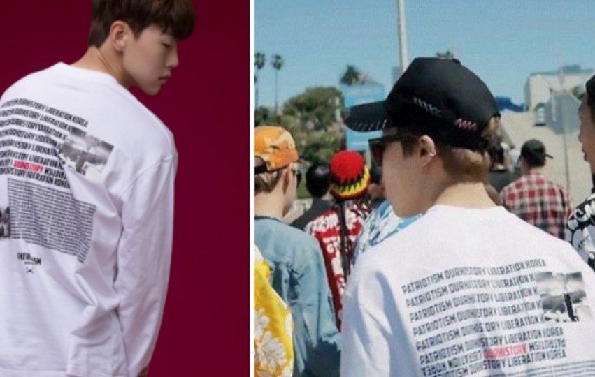 สมาชิกวง BTS ที่สวมเสื้อยืดดังกล่าวคือ จีมิน มีข่าวว่าเขาสวมเสื้อยืดตัวนี้เมื่อวันที่ 15 สิงหาคมปีก่อน เป็นวันที่ชาวเกาหลีฉลองสิ้นสุดการยึดครองของญี่ปุ่นในปี 2488 ด้านหลังของเสื้อพิมพ์ประโยคภาษาอังกฤษ PATRIOTISM OURHISTORY LIBERATION KOREA ซ้ำ ๆ หลายบรรทัด พร้อมภาพระเบิดนิวเคลียร์และภาพชาวเกาหลีฉลองการปลดแอก.- สำนักข่าวไทย