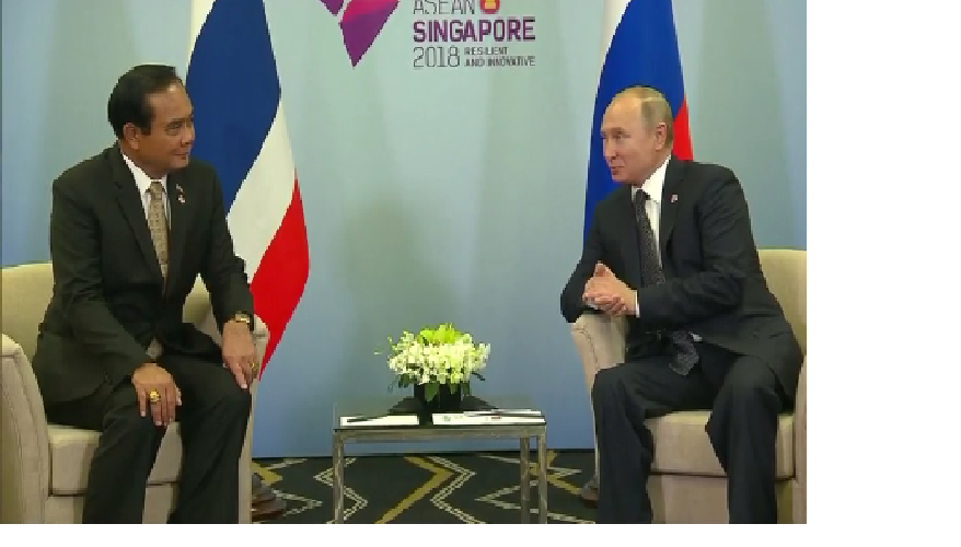 สิงคโปร์ 14 พ.ย.- นายกรัฐมนตรีประยุทธ์ จันทร์โอชา และประธานาธิบดีวลาดิเมียร์ ปูตินของรัสเซียได้หารือกันในวันพุธนี้ นอกรอบการประชุมสุดยอดสมาคมประชาชาติเอเชียตะวันออกเฉียงใต้(อาเซียน)ที่สิงคโปร์