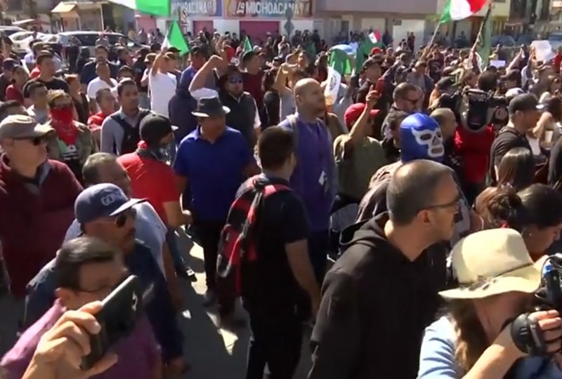 เม็กซิโกซิตี 19 พ.ย.- ชาวบ้านหลายร้อยคนในเมืองตีฮัวนาทางชายแดนเม็กซิโก-สหรัฐร่วมชุมนุมตามท้องถนนในวันอาทิตย์ เพื่อประท้วงผู้อพยพชาวอเมริกากลางจำนวนมากที่รอขอลี้ภัยในสหรัฐ