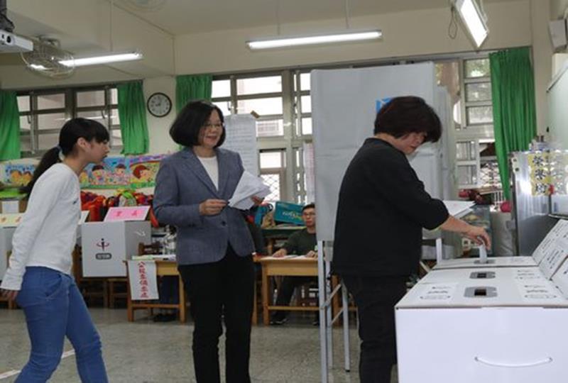 การเลือกตั้งท้องถิ่นและลงประชามติในวันนี้มีชาวไต้หวันออกไปใช้สิทธิอย่างคึกคัก ส่วนหนึ่งเป็นเพราะสภาพอากาศปลอดโปร่งเป็นใจ แม้แต่ประธานาธิบดีไช่ อิงเหวินที่มาถึงคูหาเลือกตั้งในเขตหย่งเหอของนิวไทเปตั้งแต่เวลา 08.30 น.หลังจากคูหาเปิดไปแล้ว 30 นาที ยังต้องเข้าแถวรอประมาณ 30 นาที และฆ่าเวลาด้วยการพูดคุยกับเพื่อนบ้านที่อยู่ในแถว ผู้นำไต้หวันให้สัมภาษณ์หลังใช้สิทธิว่า การลงประชามติเป็นวิธีการแสดงออกว่าไต้หวันเป็นสังคมประชาธิปไตย สาธารณชนมีสิทธิที่จะแสดงความคิดเห็น