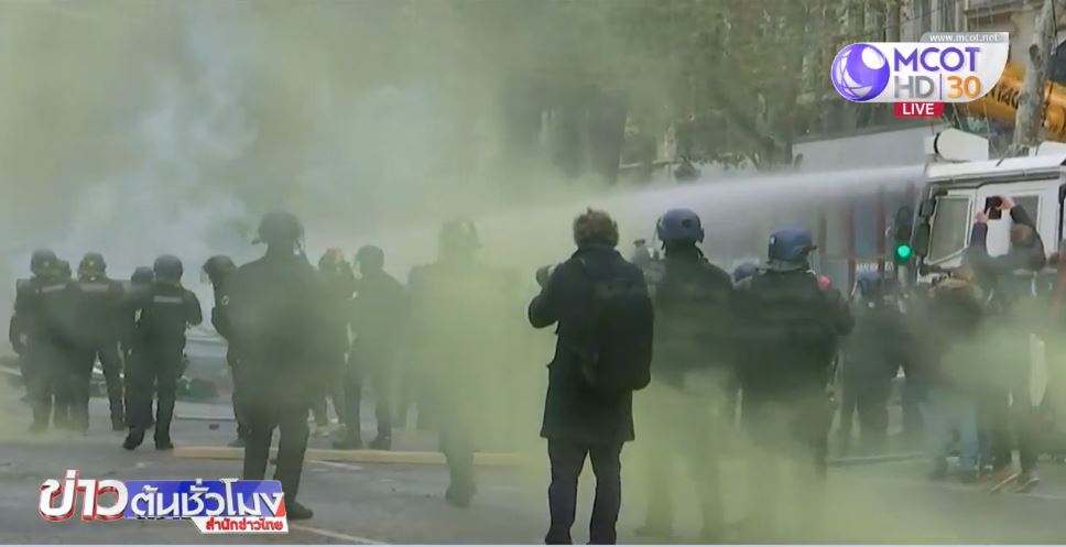 ฝรั่งเศส 25 พ.ย. – ผู้ประท้วงราคาน้ำมันเชื้อเพลิงแพงราว 5,000 คน เปิดฉากปะทะกับตำรวจปราบจลาจลที่ย่านฌ็องเซลิเซ่ หลังพยายามเคลื่อนขบวนไปยังทำเนียบรัฐบาล ตำรวจปราบจลาจลยิงแก๊สน้ำตา และฉีดน้ำดับเพลิงเข้าสลายฝูงชนที่ตอบโต้ด้วยก้อนหินและก่อกองเพลิงขึ้นหลายแห่งตามท้องถนน มีผู้ถูกจับกุมไปแล้ว 18 คน