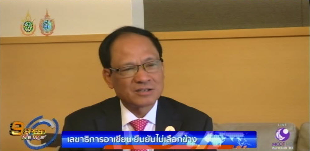 ลาว 8 ก.ย.-เลขาธิการอาเซียน ยืนยันไม่เลือกข้างกรณีพิพาทในทะเลจีนใต้ พร้อมเรียกร้องให้ทุกฝ่ายหลีกเลี่ยงการสร้างความตึงเครียดในบริเวณทะเลจีนใต้