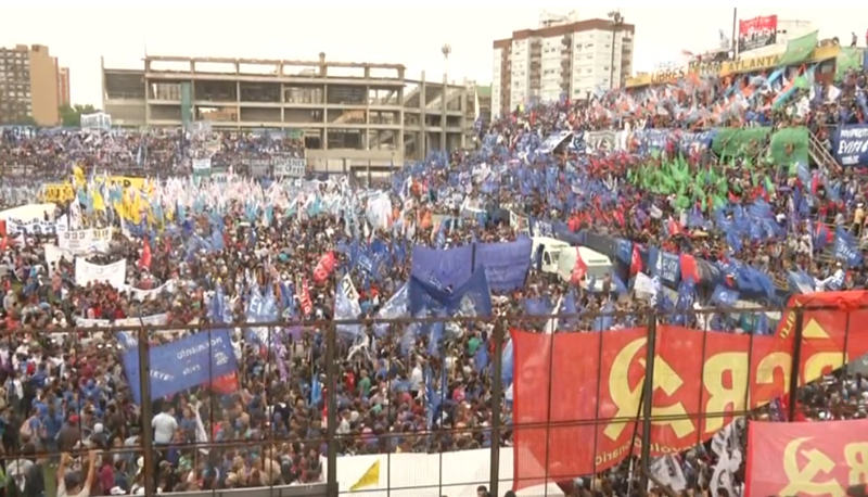 กลุ่มชุมนุมในสนามกีฬายังได้ใช้โอกาสนี้ประท้วงประธานาธิบดีเมารีซีโอ มากรี ที่บรรลุข้อตกลงรับสินเชื่อ 57,000 ล้านดอลลาร์สหรัฐ (ราว 1.8 ล้านล้านบาท) จากไอเอ็มเอฟเมื่อเดือนกันยายน เป็นสินเชื่อก้อนใหญ่ที่สุดเท่าที่ไอเอ็มเอฟเคยจัดสรรมา และมีเงื่อนไขเข้มงวดหลายอย่าง หนึ่งในนั้นคือการควบคุมการขาดดุลงบประมาณให้เป็นศูนย์ในปีหน้า หมายความว่ารัฐบาลจะต้องดำเนินมาตรการตัดลดค่าใช้จ่ายขนานใหญ่ ซึ่งจะกระทบต่อชีวิตความเป็นอยู่ของประชาชน.-สำนักข่าวไทย