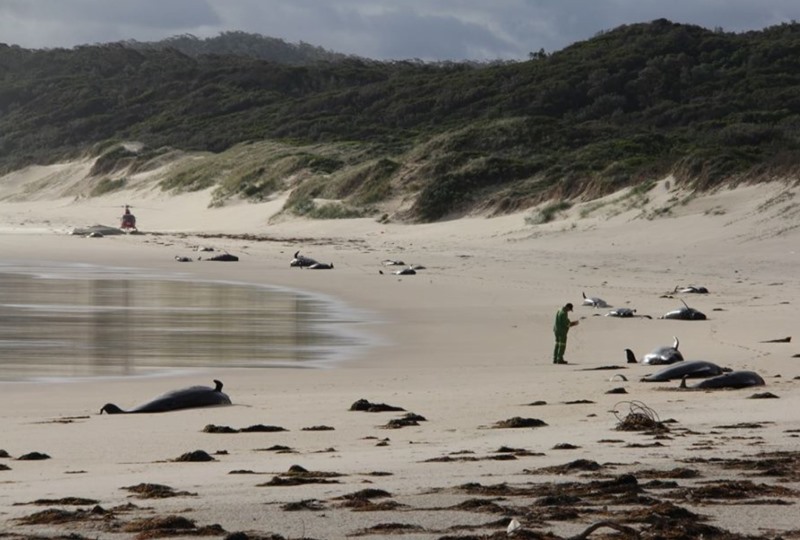 เครื่องบินตรวจการณ์เหนือชายฝั่งทะเลเขตอุทยานแห่งชาติโครจินโกลอง รัฐวิกตอเรีย พบวาฬนำร่อง 27 ตัว และวาฬหลังค่อม 1 ตัวเกยตื้นตายที่ชายหาดเมื่อบ่ายวันอังคาร เจ้าหน้าที่กล่าวว่า ในเบื้องต้นพบวาฬ 8 ตัวยังมีชีวิตอยู่แต่อาการหนักแล้ว โดยในช่วงที่เจ้าหน้าที่อุทยานมาถึงพบว่าวาฬตายหมดแล้ว เจ้าหน้าที่อุทยานแห่งชาติกล่าวว่า ได้นำตัวอย่างจากซากวาฬไปตรวจพิสูจน์ เพื่อหาสาเหตุที่วาฬมาเกยตื้นตาย ซึ่งเป็นเรื่องที่น่าประหลาดมาก และนับเป็นวาฬเกยตื้นตายหมู่ครั้งใหญ่ที่สุดของออสเตรเลียนับตั้งแต่ช่วงต้นทศวรรษปี 2523 ก่อนหน้านี้พบวาฬนำร่องถึง 145 ตัวถูกซัดมาเกยตื้นที่ชายหาดในพื้นที่ห่างไกลทางใต้ของนิวซีแลนด์ โดยพบว่าวาฬตายลงจำนวนครึ่งหนึ่ง ส่วนที่เหลือหาทางช่วยไม่ได้และจำเป็นต้องฆ่าทิ้ง .- สำนักข่าวไทย