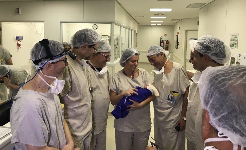 แลนแซ็ตรายงานว่า การปลูกถ่ายมดลูกเกิดขึ้นในเดือนกันยายน 2559 ที่เมืองเซาเปาโลของบราซิล ผู้รับเป็นสตรีวัย 35 ปีที่ไม่มีมดลูกแต่กำเนิดเพราะเป็นโรคพบได้ยากชนิดหนึ่ง ส่วนผู้บริจาคเป็นสตรีวัย 45 ปี เสียชีวิตเพราะโรคหลอดเลือดสมอง ผู้รับทำเด็กหลอดแก้วในช่วง 4 เดือนก่อนรับการปลูกถ่าย จนได้ไข่ที่ผ่านการผสมแล้วทั้งหมด 8 ใบ หลังจากนั้นแพทย์ได้ผ่าตัดมดลูกออกจากผู้บริจาคแล้วปลูกถ่ายให้ผู้รับ ใช้เวลานานกว่า 10 ชั่วโมงในการเชื่อมต่อเส้นเลือด เส้นเอ็น และช่องคลอด ผู้รับต้องรับยากดการต้านอวัยวะใหม่ ยาฆ่าเชื้อ การป้องกันการเกิดลิ่มเลือดและยาแก้ปวด จนกระทั่งผ่านไป 5 เดือน ผลการสแกนมดลูกใหม่พบว่าทำงานได้ปกติและเธอมีประจำเดือนอย่างสม่ำเสมอ แพทย์จึงนำไข่ที่แช่แข็งไว้ไปฝังในมดลูกในอีกสองเดือน และมีข่าวดีในอีก 10 วันต่อมาว่าเธอตั้งครรภ์ ทารกเพศหญิงถือกำเนิดในเดือนธันวาคมปีก่อนด้วยวิธีผ่าตัดคลอด อายุครรภ์เกือบ 36 สัปดาห์ น้ำหนักตัวแรกคลอด 2.5 กิโลกรัม แพทย์ได้ผ่าตัดมดลูกที่ปลูกถ่ายออกเพื่อที่มารดาจะได้ไม่ต้องรับยากดภูมิต้านทานอีก