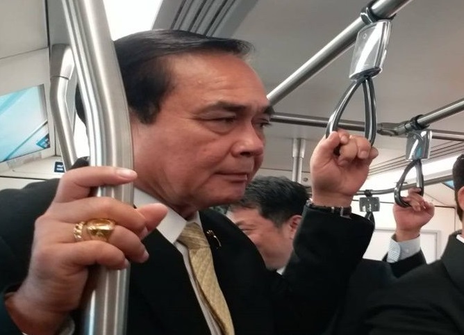 After the opening ceremony, the prime minister boarded a train from its Samut Prakan depot to the Kheha Samut Prakan station. At the station, he was greeted by the people who welcomed him. He also asked about their problems and said that cooperation from local residents could allow the government to quickly develop mass transit systems. He promised that the government would build residences for people whose properties were expropriated for mass transit projects.