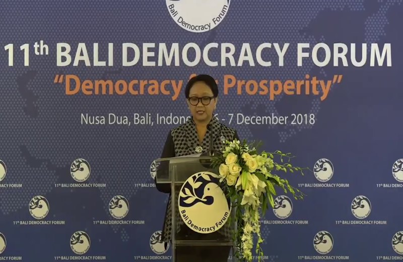 บาหลี 6 ธ.ค.- นางเรตโน มาร์ซูดี รัฐมนตรีต่างประเทศอินโดนีเซียกล่าวเตือนผู้นำประเทศในภูมิภาคเอเชีย-แปซิฟิกถึงแนวโน้มที่คนรุ่นใหม่ไม่สนใจเรื่องประชาธิปไตยกันแล้ว