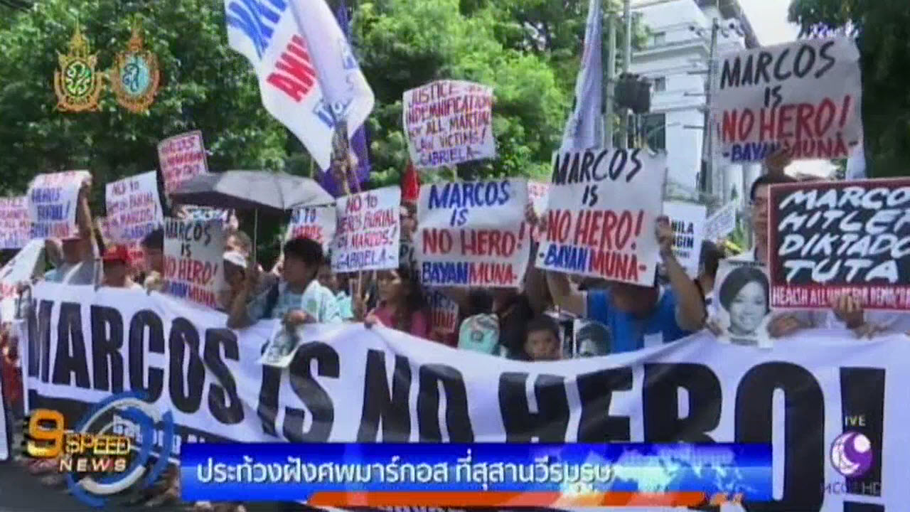 ฟิลิปปินส์ 7 ก.ย.-ชาวฟิลิปปินส์หลายร้อยคน ชุมนุมประท้วงคัดค้านแผนการนำศพ นายเฟอร์ดินานด์ มาร์กอส อดีตประธานาธิบดี มาฝังที่สุสานวีรบุรุษแห่งชาติ ผู้ชุมนุมเหล่านี้เคยถูกละเมิดสิทธิมนุษยชนเมื่อครั้งนายมาร์กอสปกครองประเทศ ขณะที่ทนายความของรัฐบาลและทายาทมาร์กอสอ้างว่า ศพของเขาสมควรถูกฝังที่สุสานวีรบุรุษฯ เนื่องจากเป็นทั้งอดีตประธานาธิบดีและอดีตทหารผ่านศึก นายมาร์กอสถูกพลังประชาชนโค่นล้มอำนาจเมื่อปี 2529 ก่อนไปอยู่ที่รัฐฮาวายของสหรัฐ และถึงแก่อสัญกรรมเมื่อปี 2532 จนปีที่แล้วได้มีการนำศพกลับมาฝังที่จังหวัดอิโลกอส นอร์เต.-สำนักข่าวไทย