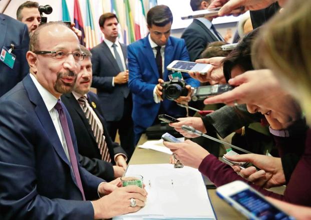 นายคาลิด อัล-ฟาลีห์ รัฐมนตรีน้ำมันซาอุฯแถลงกับผู้สื่อข่าวระหว่างการประชุมองค์การกลุ่มประเทศผู้ส่งออกน้ำมัน(โอเปก)ที่กรุงเวียนนา ออสเตรีย ขณะที่ราคาน้ำมันในปัจจุบันดิ่งลงเรื่อยๆเพราะการผลิตล้นตลาด โอเปกถูกกดดันให้ลดการผลิต และหารือกับประเทศผู้ผลิตน้ำมันนอกกลุ่มโอเปก ซึ่งนักวิเคราะห์คาดว่า ถ้าเป็นไปได้อาจลดลงอย่างน้อยวันละ 1 ล้านบาร์เรล ขณะที่สหรัฐพยายามวิ่งเต้นกดดันรอบด้านให้คงปริมาณการผลิตเท่าเดิม ราคาน้ำมันดิบลดลงอย่างมากมาตั้งแต่ตุลาคมเพราะประเทศผู้ผลิตน้ำมันรายใหญ่ ซึ่งรวมถึงสหรัฐ ผลิตน้ำมันในอัตราสูงและเกรงว่าเศรษฐกิจที่ชะลอตัวอาจทำให้ความต้องการด้านพลังงานน้อยลง .- สำนักข่าวไทย