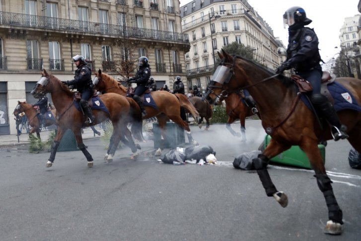 ผู้ประท้วงในปารีสที่มีอยู่ราว 17,000 คน ซึ่งบางกลุ่มในจำนวนนั้นเข้าทุบทำลายร้านค้าและปล้นสินค้าไป นอกจากนี้ยังมีรายงานเหตุปะทะกันระหว่างผู้ประท้วงกับตำรวจในเมืองต่างๆทั่วฝรั่งเศส จากการจัดชุมนุมประท้วงต่อต้านรัฐบาลระลอกใหม่ในสุดสัปดาห์นี้ โดยมีผู้ประท้วงหลายร้อยคนปะทะกับตำรวจปราบจลาจลในเมืองบอร์กโดซ์และนองต์ ต้องยิงแก๊สน้ำตาเข้าสลายฝูงชน ส่วนที่เมืองมาร์กเซย กลุ่มผู้ประท้วงปะทะกับตำรวจและมีการวางเพลิงเผาหลายแห่ง เป็นการประท้วงต่อเนื่องโดยมีจุดเริ่มต้นจากความไม่พอใจแผนขึ้นภาษีเชื้อเพลิงในปีหน้า บานปลายไปถึงปัญหาค่าครองชีพแพง และไม่พอใจนโยบายประธานาธิบดีเอมานูว์แอล มาครง กระทรวงมหาดไทยฝรั่งเศสรายงานว่า มีผู้บาดเจ็บ 135 คนจากการประท้วงในวันเสาร์ ในจำนวนนี้เป็นตำรวจ 17 นาย .- สำนักข่าวไทย