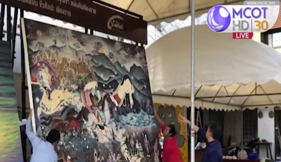 Led by national artist Chalermchai Kositpipat, the painting was completed by artists at the Art Bridge Chiang Rai centre.