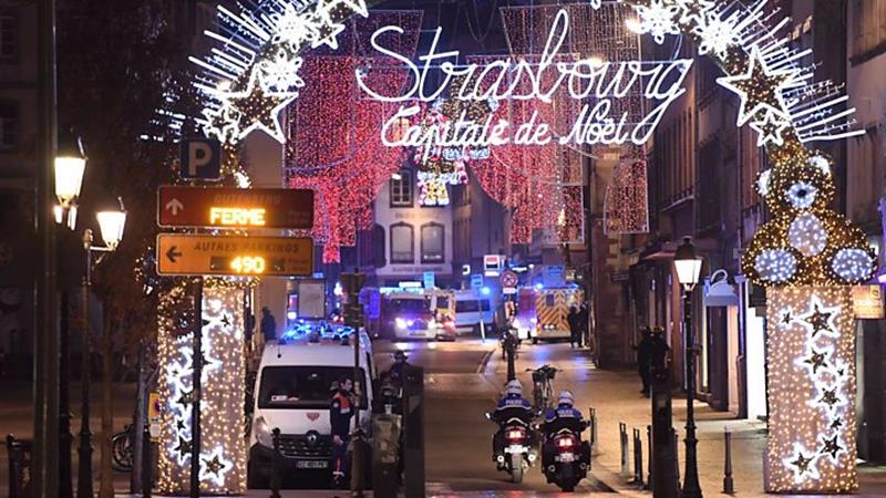 เหตุเกิดเมื่อเวลา 20.00 น.วันอังคารตามเวลาฝรั่งเศส ตรงกับเวลา 02.00 น.วันนี้ตามเวลาในไทย เป็นช่วงที่บรรดาแผงขายของต่าง ๆ เตรียมปิดร้าน และร้านอาหารเริ่มมีคนเข้าไปใช้บริการ ผู้ไปเที่ยวงานต้องหาหลบหาที่ปลอดภัยทันทีที่ได้ยินเสียงปืน สส.สภายุโรปซึ่งพักในโรงแรมใกล้เคียงเผยว่า มองลงมาจากหน้าต่างห้องพัก เห็นคนช่วยกันลากผู้บาดเจ็บไปยังที่ปลอดภัยท่ามกลางผู้คนที่ตื่นตระหนก ทหารตำรวจปิดล้อมพื้นที่เกิดเหตุ แหล่งข่าวเผยว่ามือปืนถูกจับกุมแล้ว แต่ตำรวจแถลงในภายหลังว่า ยังตามล่าตัวอยู่ มือปืนคือนายเชอริีฟ เชกัตต์ วัย 29 ปี เกิดในเมืองสตราสบูร์ก รัฐมนตรีมหาดไทยเผยว่า เขาอยู่ในรายชื่อจับตาของหน่วยงานความมั่นคง ขณะที่ทางการท้องถิ่นเผยว่า เขาอยู่ในรายชื่อจับตาของหน่วยข่าวกรอง