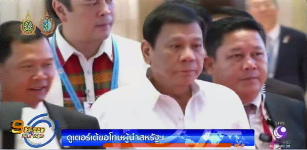 ประธานาธิบดีโรดริโก ดูเตอร์เต ของฟิลิปปินส์ ออกแถลงการณ์แสดงความเสียใจต่อการใช้วาจาที่ไม่เหมาะสมและก้าวร้าวต่อประธานาธิบดีบารัค โอบามา ของสหรัฐ และพร้อมจะแก้ไขข้อผิดพลาดที่เกิดขึ้น รวมทั้งจะพบหารือกับผู้นำสหรัฐในโอกาสต่อไป แถลงการณ์ครั้งนี้มีขึ้นหลังผู้นำสหรัฐยกเลิกกำหนดการหารือแบบทวิภาคีกับผู้นำฟิลิปปินส์ในวันนี้ ที่กรุงเวียงจันทน์ ระหว่างเข้าร่วมการประชุมสุดยอดอาเซียน.-สำนักข่าวไทย