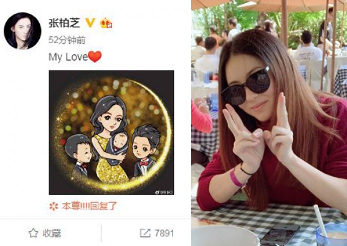 เว่ยโป๋โพสต์ว่า ถึงแฟนคลับ มิตรสหายในแวดวงสื่อ และผู้เกี่ยวข้อง ทางสตูดิโอมีความยินดีอย่างยิ่งที่จะเป็นตัวแทนจางป๋อจือรายงานข่าวดีว่า เธอคลอดลูกคนที่สามเมื่อเดือนพฤศจิกายน เป็นทารกเพศชาย โดยแม่และเด็กสุขภาพแข็งแรงดี เมื่อเวลา 10.30 น.ที่ผ่านมา จางป๋อจือโพสต์ภาพวาดน่ารักเป็นรูปเธอและลูกชาย 3 คน โดยขึ้นแคปชั่นสั้นๆว่า “My Love” พร้อมกับอิโมจิรูปหัวใจ การยืนยันดังกล่าวมีขึ้นหลังจากสื่อฮ่องกงรายงานเมื่อเดือนที่แล้วว่า จางป๋อจือวัย 38 ปีคลอดลูกชายที่โรงพยาบาลฮ่องกงเมื่อ 25 พฤศจิกายน หลังเคยแต่งงานกับพระเอกเซียะถิงฟงและมีลูกด้วยกัน 2 คน จางป๋อจือย้ายมาอยู่ที่สิงคโปร์พร้อมกับลูกชาย 2 คนหลังหย่าจากพระเอกคนดัง จากนั้นมีข่าวคบหาดูใจกับนักธุรกิจชาวสิงคโปร์วัย 65 ปีตั้งแต่เดือนมีนาคม แอปเปิลเดลีรายงานคาดว่านักธุรกิจใหญ่รายนี้ที่มีหุ้นส่วนธุรกิจมากมายในสิงคโปร์เป็นพ่อของเด็กคนดังกล่าว .- สำนักข่าวไทย