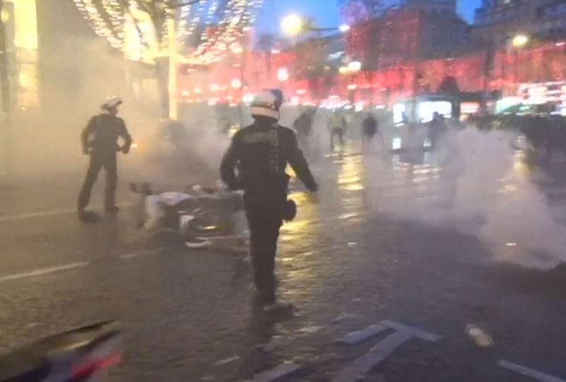 การชุมนุมประท้วงครั้งล่าสุดเป็นวันเสาร์ที่หกติดต่อกันแล้ว จำนวนผู้เข้าร่วมลดลงและส่วนใหญ่เป็นไปอย่างสงบ แต่ที่กรุงปารีสเกิดเหตุรุนแรงเมื่อผู้ประท้วงขว้างปาสิ่งของและวิ่งไล่ตำรวจ คลิปที่ส่งต่อในโลกออนไลน์อย่างกว้างขวางเห็นกลุ่มผู้ประท้วงล้อมตำรวจใกล้ถนนช็องเซลีเซ ตำรวจนายหนึ่งชักปืนขึ้นเล็งไปยังผู้ประท้วงที่กำลังล้มรถจักรยานยนต์ของเขา แต่ไม่ได้ยิงและเก็บปืนกลับ ก่อนขับรถจักรยานยนต์ออกไปจากที่ชุมนุมพร้อมกับตำรวจนายอื่น โดยมีกลุ่มประท้วงวิ่งไล่ขว้างปาข้าวของตามหลัง
