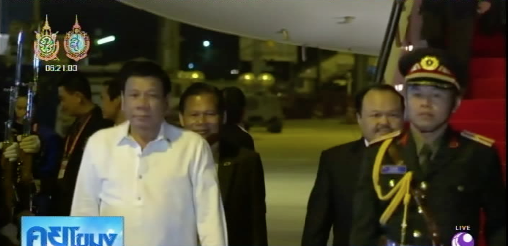 ประธานาธิบดีโรดริโก ดูเตอร์เต ของฟิลิปปินส์ กล่าวในการแถลงข่าวก่อนออกเดินทางไปร่วมประชุมสุดยอดผู้นำอาเซียนที่กรุงเวียงจันทน์ของลาว โดยได้กล่าวข่มขู่ประธานาธิบดีบารัค โอบามาของสหรัฐว่า หากกล้ามาตั้งคำถามและตำหนิตนเรื่องสงครามปราบปรามยาเสพติดในการประชุมครั้งนี้ ตนจะสาปแช่งกลับกลางที่ประชุม และนายโอบามาจะได้ลงไปคลุกปลักโคลนเหมือนหมูแน่ นอกจากนี้ ผู้นำฟิลิปปินส์ยังเรียกผู้นำสหรัฐว่าเป็น “Son of a bitch”