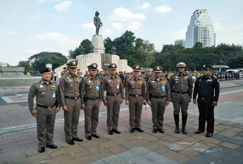 Deputy national police chief Chalermkiat Sriworakhan and Bangkok police chief Sutthipong Wongpin launched part of the policemen at the King Rama VI monument. About 200 volunteers and representatives of the Bangkok Metropolitan Administration (BMA) and the 1st Army were present at the ceremony.