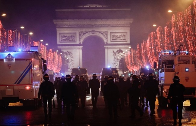หน่วยรักษาความมั่นคงฝรั่งเศสใช้แก๊สน้ำตาและระเบิดแสงเข้าสกัดผู้ชุมนุมที่เดินขบวนผ่านย่านใจกลางกรุงปารีสจากการประท้วงอย่างสงบกลายเป็นการยั่วยุกันในวันเสาร์ สถานการณ์เต็มไปด้วยกลุ่มควันและแก๊สน้ำตาขณะที่ตำรวจปราบจลาจลเคลื่อนกำลังรุกเข้าใส่กลุ่มผู้ประท้วงและตั้งแนวกั้นไว้ กลุ่มผู้ประท้วงผลักดันเข้าสู่ถนนฌองเซลิเซซึ่งเคยเป็นพื้นที่จัดการประท้วงมาก่อนนี้ นายคริสโตป กาซตาเนร์ รัฐมนตรีมหาดไทยฝรั่งเศสประเมินว่าผู้ประท้วงมีจำนวนราว 50,000 คนที่เข้าร่วมการชุมนุมทั่วฝรั่งเศสวันเสาร์ ตำรวจระบุว่ามีผู้ประท้วงราว 3,500 คนในกรุงปารีส .- สำนักข่าวไทย