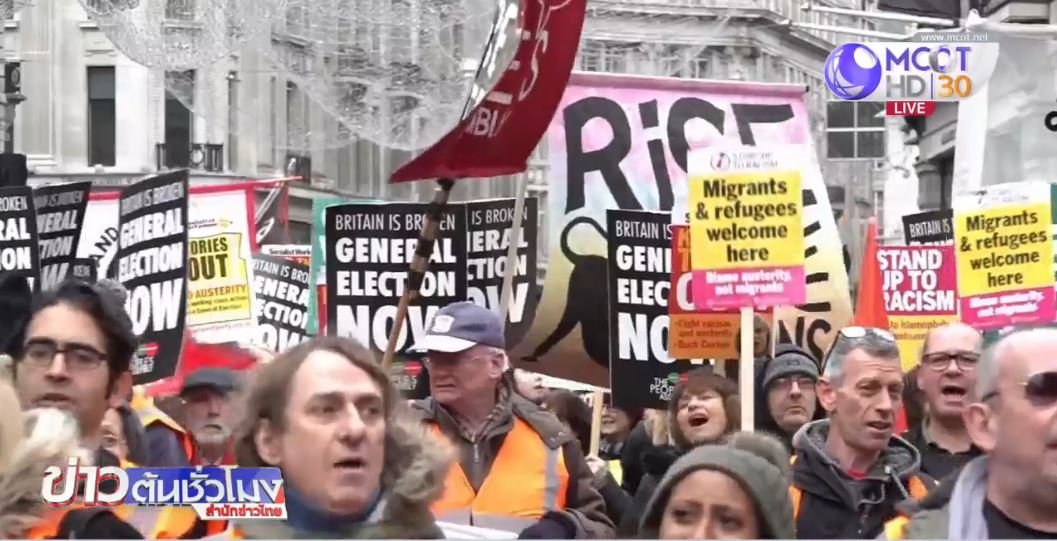 ผู้ชุมนุมพากันเรียกร้องให้นายกรัฐมนตรีเทเรซา เมย์ ลาออก และจัดการเลือกตั้งใหม่ ก่อนจะเคลื่อนขบวนไปหยุดลงที่จัตุรัสทราฟัลการ์ ซึ่งนักการเมืองพรรคแรงงานได้ปราศัยต่อผู้ประท้วงว่าข้อตกลงเบร็กซิทของนางเมย์ จะไม่ผ่านความเห็นชอบของสภาผู้แทนราษฎร ที่จะมีการลงมติในวันอังคารนี้ และว่าฝ่ายค้านจะหาทางยื่นญัตติไม่ไว้วางใจนางเมย์ในเวลาที่เหมาะสม