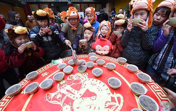 ปักกิ่ง 13 ม.ค.- ประชาชนทางภาคตะวันออกของจีนนิยมรับประทานโจ๊กที่ทำจากข้าวต้ม ธัญพืช ผลไม้แห้ง และถั่วต่างๆเพื่อเฉลิมฉลองในเทศกาลล่าปาตามประเพณีในวันขึ้น 8 ค่ำ เดือน 12 ตามปฏิทินจันทรคติของจีน
