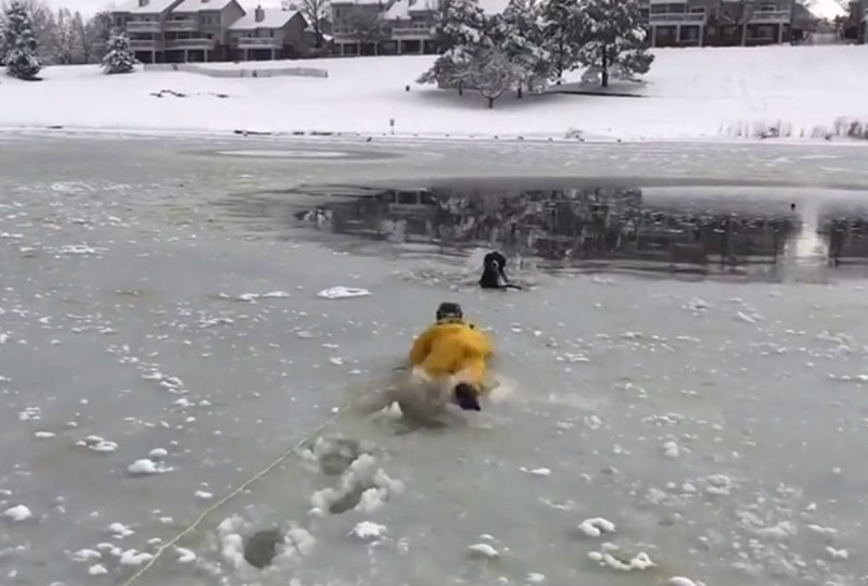 โคโลราโด 14 ม.ค.- สื่อเผยแพร่คลิปวิดีโอหน่วยบรรเทาสาธารณภัยสหรัฐเข้าช่วยเหลือสุนัขซึ่งติดอยู่ในสระน้ำที่กลายเป็นแผ่นน้ำแข็งในเมืองโลนทรี ห่างไปราว 24 กิโลเมตรจากรัฐโคโลราโดเมื่อวันเสาร์
