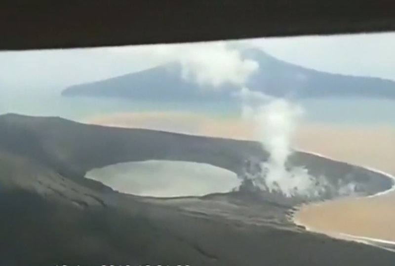 จาการ์ตา 14 ม.ค.- ภาพถ่ายทางอากาศบริเวณภูเขาไฟอานักกรากะตัวในอินโดนีเซียที่บันทึกไว้เมื่อวันอาทิตย์พบการยุบตัวหลังจากปะทุรุนแรงและทำให้เกิดคลื่นยักษ์สึนามิทางช่องแคบซุนดาซัดเข้าฝั่งเมื่อเดือนธันวาคมปีที่แล้ว