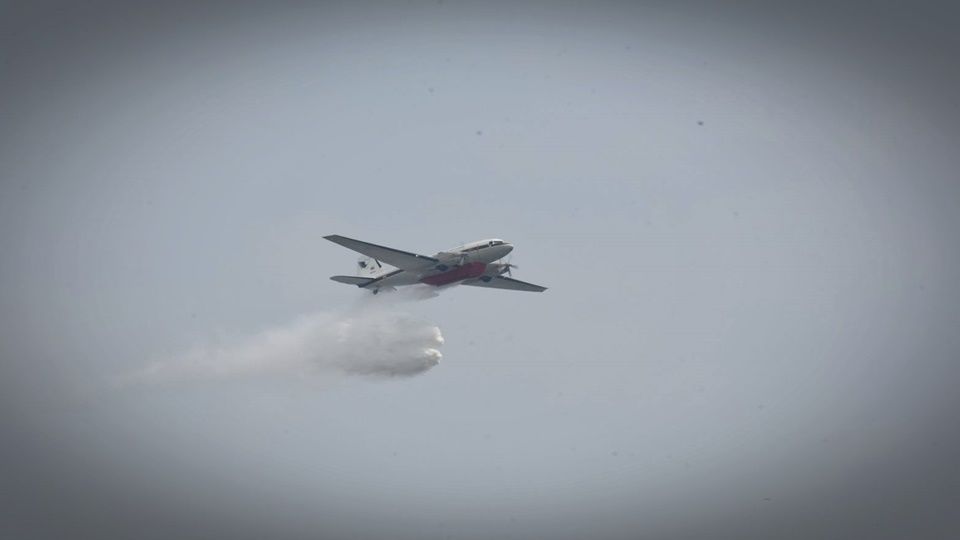Each flight can carry about 3,000 litres of water and sprayed water mist at 1,500 feet. Five flights carry out the mission today to reduce haze in Don Muang and Chatuchak districts.